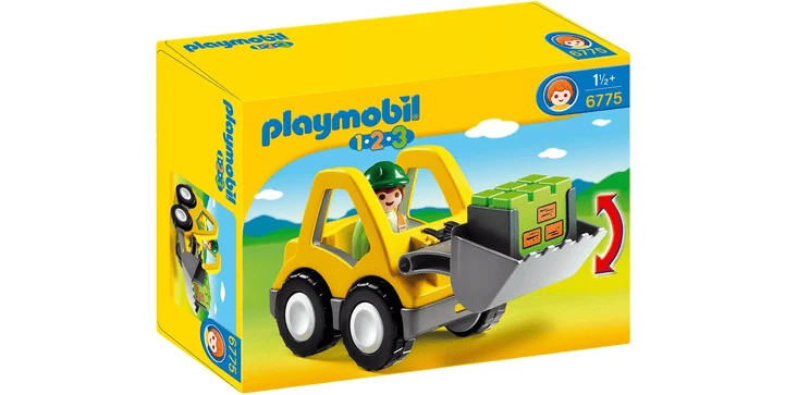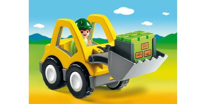 Der kleine Bauarbeiter ist mächtig stolz auf seinen Radlader: damit kann er laden, transportieren und zusammenschieben wie die Großen!
