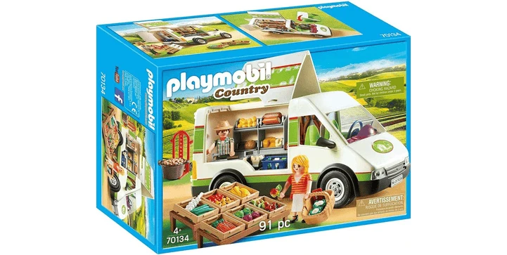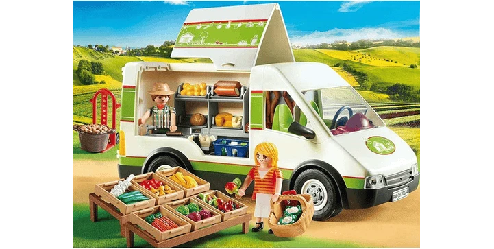 Im dem Playmobil-Hofladen-Fahrzeug werden Hofprodukte, wie Gemüse, Eier, Milch, Honig, etc. zum Verkauf angeboten.