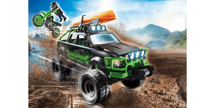 Gehen Sie aus dem Gitter mit diesem Wochenend-Krieger. Ausgestattet mit Dachträger für Ihr Kanu und genug Platz im LKW-Bett für das Motorrad, ist dieser Monstertruck bereit, die härtesten Straßen auf der Suche nach dem nächsten Offroad-Abenteuer zu treffen. Dank des geräumigen Designs kann der Truck bis zu vier Figuren sitzen, also seien Sie sicher, einige Freunde für die Fahrt einladen! Wenn das 4×4 geparkt ist, nehmen Sie das Fahrrad auf die Trails für einige Extremsportarten – stellen Sie sicher, dass Sie Ihren Helm tragen. Set beinhaltet eine Figur, Geländewagen, Motorrad, Kanu und anderes Zubehör. Empfohlen für Kinder ab sechs Jahren.