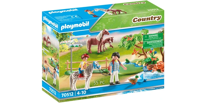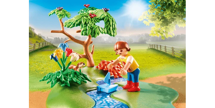 - Zubehör: 1 Fluss, 1 Zaun, 1 Helm, 1 Rucksack, 1 Kescher, 1 Schiffchen, 1 Blume inkl. Blüten, 2 Bäume mit Grün, 1 Wegweise, 1 Halfter, 1 Zügel