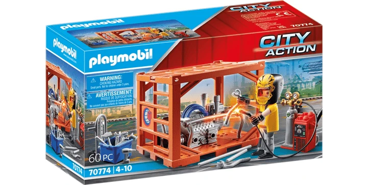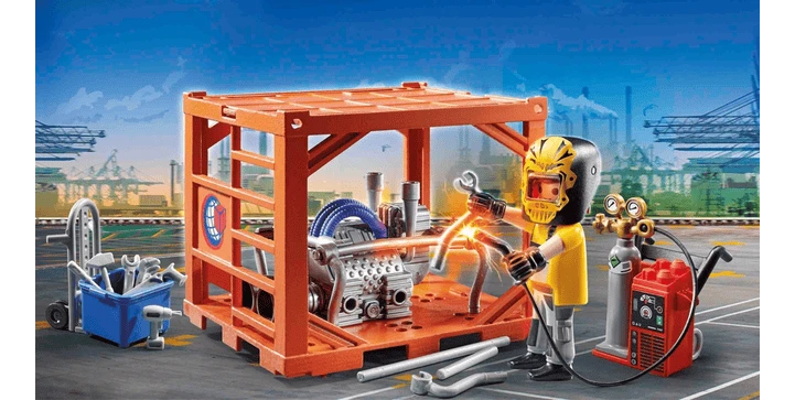 mit Schweißer und Ausrüstung sowie speziellen Materialien zur Fertigung von Ladebefestigungen.