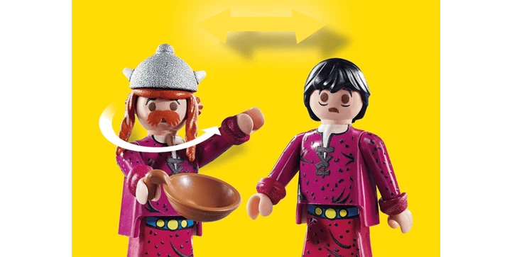 - Zubehör: 1 Kessel, 1 Holzscheit, 1 Hackklotz, 2 Teller, 2 Flaschen, 1 Becher,1 Suppenlöffel, 1 Kelle, 1 Sack, 1 Stein, 1 Standplatte, 1 Leiter, 1 Baum, 1 Wechselperücke, 1 Helm mit Hörnern, 1 Gehstock, 1 Sichel, 1 Gürtel, 6 Manschetten, 1 Umhang