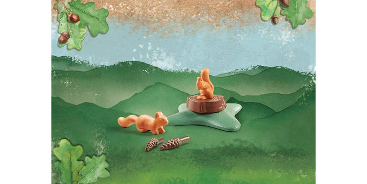 - Zubehör: 1 Baumstamm, 2 Tannenzapfen, 1 Wissenskarte „Eichhörnchen“