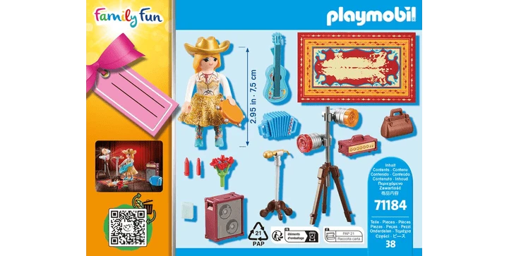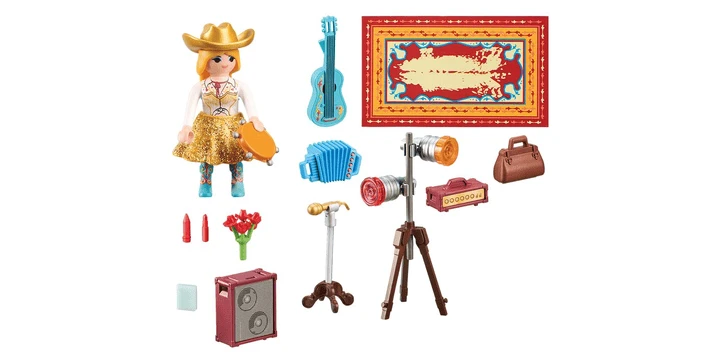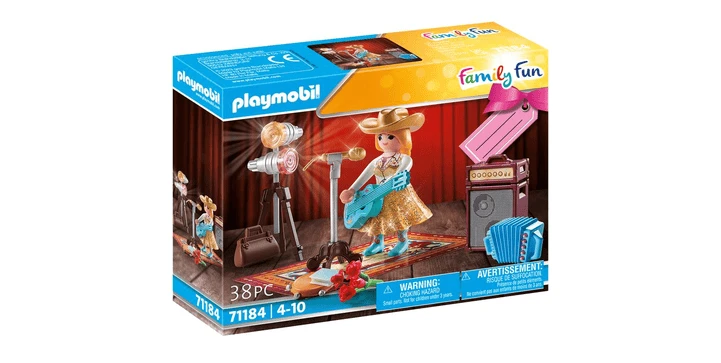 Auf der Suche nach einem passenden Geschenk für kleine Musikfans? Dann ist das PLAYMOBIL-Geschenkset Countrysängerin genau das Richtige. Auf der Bühne ist die Sängerin voll in ihrem Element. Am liebsten singt sie ihre eigenen Songs und begleitet sich dazu mit der Gitarre. Doch auch Tamburin und Akkordeon beherrscht die begabte Musikerin perfekt.