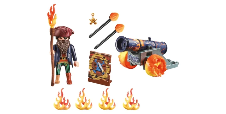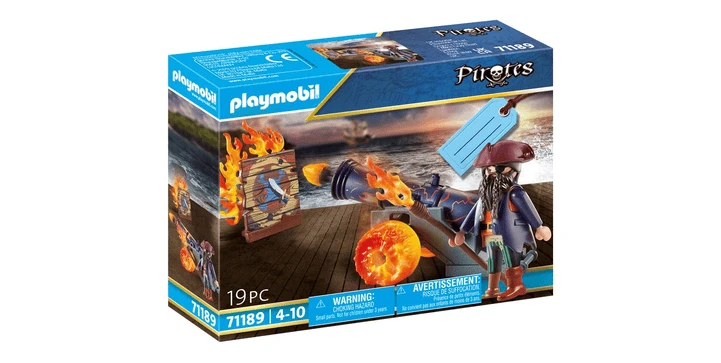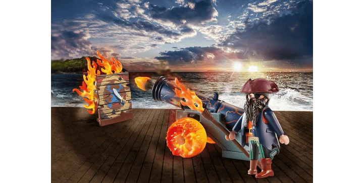 Das PLAYMOBIL-Geschenkset Pirat mit Kanone ist das ideale Mitbringsel für die nächste Piratenparty. Abenteuerlustige Kinder ab 4 Jahren werden dieses Piratenspielset lieben. Mit seiner funktionsfähigen Kanone verteidigt sich der Pirat gegen jeden Angreifer. Möchte er die Position verändern, nimmt er die Kanone einfach am Griff und zieht sie hinter sich her. Das Spielset enthält eine PLAYMOBIL-Piratenfigur, eine Kanone mit zwei Feuerpfeilen, ein Zielbrett und weiteres starkes Zubehör. Die Kanone ist funktionsfähig. Dank dekorativer Schachtel und Namensschild zum Beschriften sparen PLAYMOBIL-Geschenksets Geschenkpapier und schonen so die Umwelt. Ein tolles Spielzeugset zum Mitbringen und Verschenken.