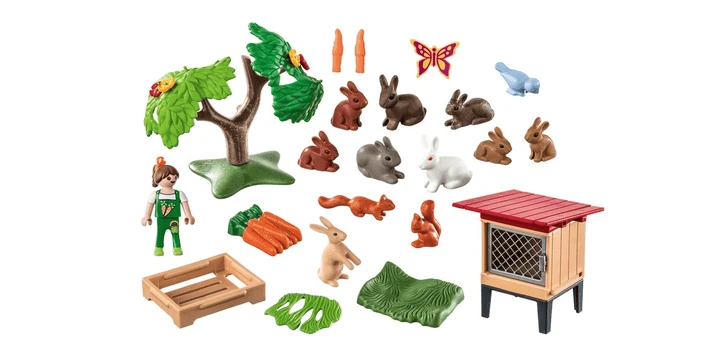 - Zubehör: 2 Kaninchenstall, 1 Grünfutter, 2 Grüneinlage, 1 Karotte, 2 einz. Karotten