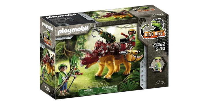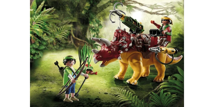 Stürz dich mit den Dinos ins große Dschungelabenteuer! Milow schlägt sich durch das Dschungeldickicht und versucht den Triceratops aus den Händen des gemeinen Bösewichts zu befreien. Doch das ist gar nicht so leicht, denn der Schurke hat sich auf dem Stehplatz auf dem Rückenpanzer des Dinos positioniert und lädt gerade die Kanone. Wenn Milow sich nicht beeilt, bekommt er es mit einem brandgefährlichen Dino-Mensch-Gespann zu tun.