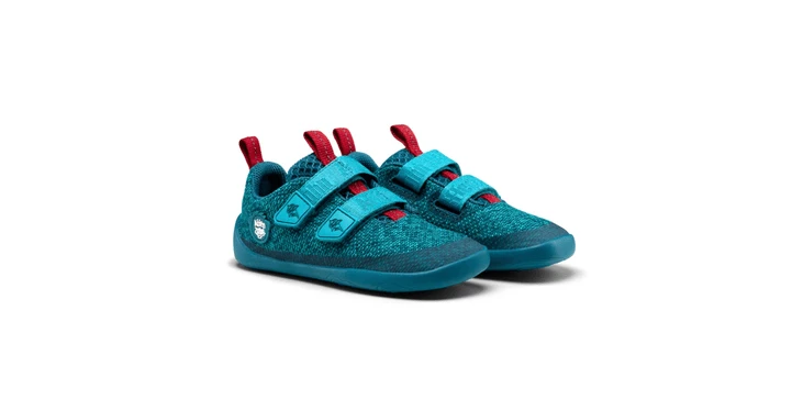 Barfußschuh aus Knit für den Sommer mit Klettverschlüssen. Dieser Schuh ist vegan.