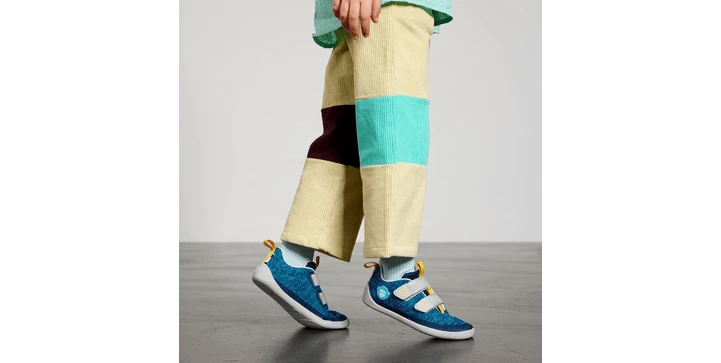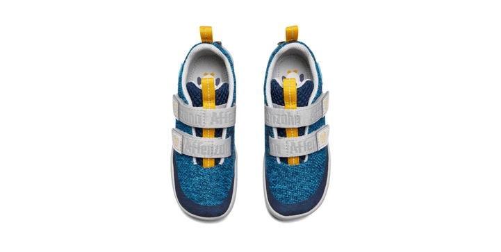 Barfußschuh aus Knit für den Sommer mit Klettverschlüssen. Dieser Schuh ist vegan.