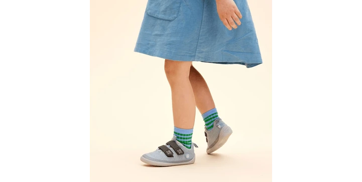 Barfußschuh aus Knit für den Sommer mit Klettverschlüssen. Dieser Schuh ist vegan.