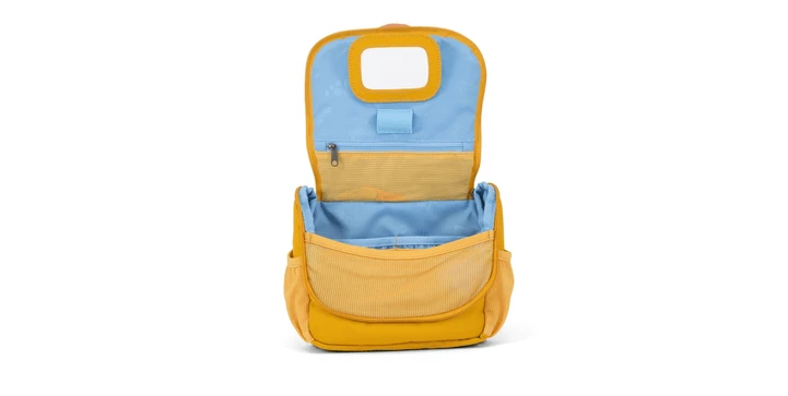 - Im Inneren der Kulturtasche verbirgt sich eine Mesh-Tasche. Sehr praktisch: Kleine Dinge sind direkt sichtbar und gehen nicht verloren