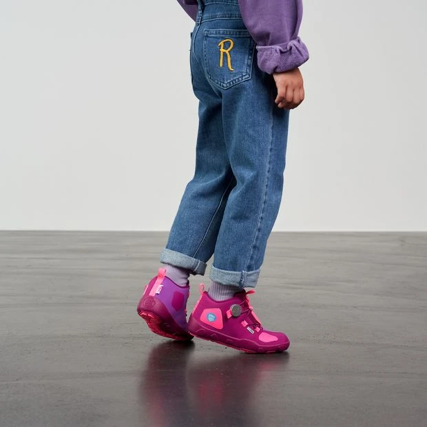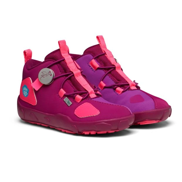 Wasserdichter Barfußschuh mit cleverem Schnellschnürsystem aus Gummiband und Knopf mit passendem Tieraufdruck. Dieser Schuh ist vegan.