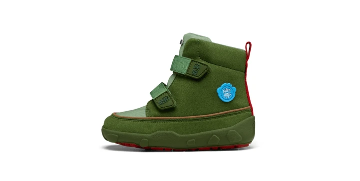 Warm gefütterter, wasserdichter Barfuß-Winterstiefel mit Kletterverschlüssen. Dieser Schuh ist vegan.