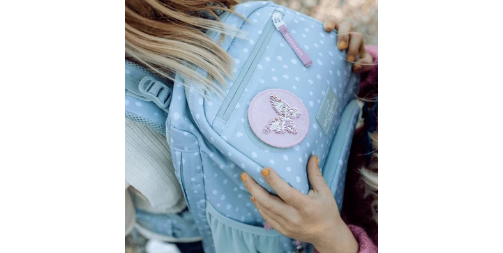 Der Button kann im Minirucksack aufbewahrt werden und kann sowohl an den Grundschulrucksäcken Classic, Classic Maxi und Active Air FLX als auch am ovalen Schlamperetui und an den A4 Sammelmappen von Beckmann angebracht werden.