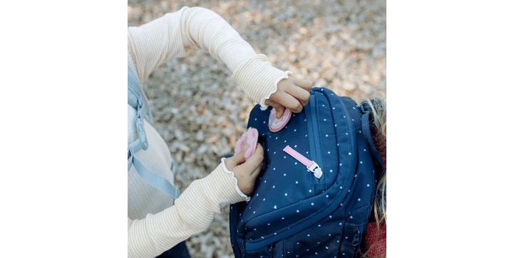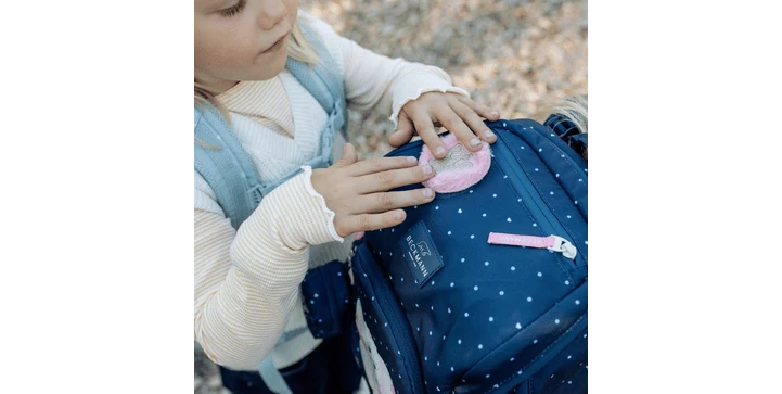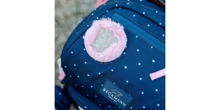 Der Button kann im Minirucksack aufbewahrt werden und kann sowohl an den Grundschulrucksäcken Classic, Classic Maxi und Active Air FLX als auch am ovalen Schlamperetui und an den A4 Sammelmappen von Beckmann angebracht werden.