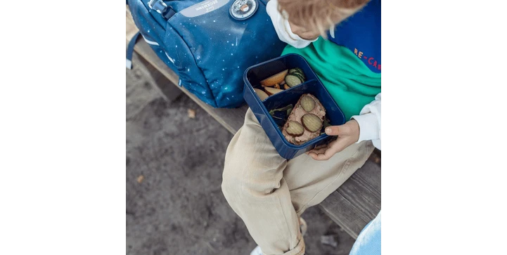 Die Brotdose für die Grundschule ist im Design auf den Schulrucksack Classic, Classic Maxi und Active Air FLX abgestimmt. Die Brotdose schließt dicht und hat eine herausnehmbare Trennwand. Sogar ein kleiner Joghurt findet darin Platz.
