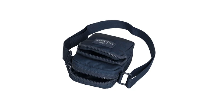 Praktische Schultertasche mit zwei Reißverschlussfächern und einer Tasche aus Mesh-Gewebe. Verstellbarer Tragegurt.