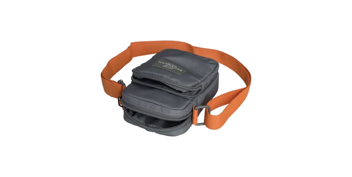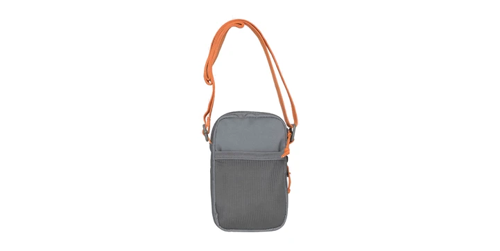 Praktische Schultertasche mit zwei Reißverschlussfächern und einer Tasche aus Mesh-Gewebe. Verstellbarer Tragegurt.