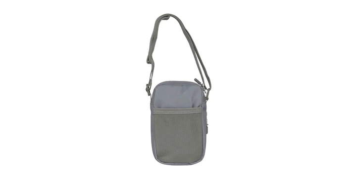 Praktische Schultertasche mit zwei Reißverschlussfächern und einer Tasche aus Mesh-Gewebe. Verstellbarer Tragegurt.