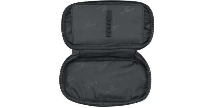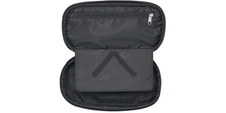 Das ovale Schlamperetui ist geräumig, hat ein separates Fach für die am häufigsten gebrauchten Stifte und eine Innentasche mit Reißverschluss.