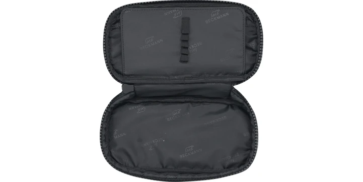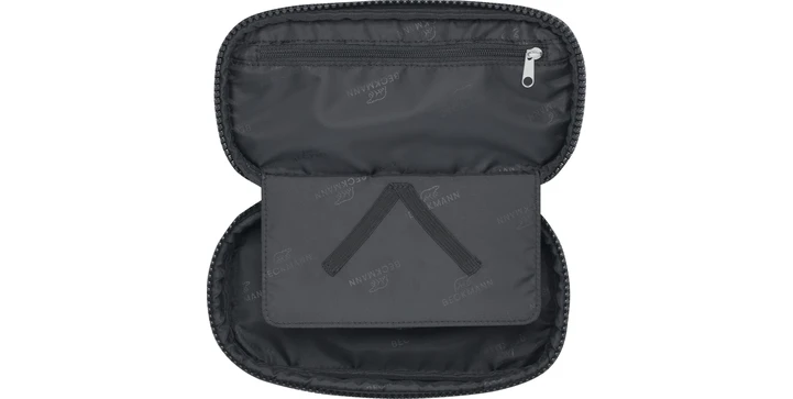 Das ovale Schlamperetui ist geräumig, hat ein separates Fach für die am häufigsten gebrauchten Stifte und eine Innentasche mit Reißverschluss.