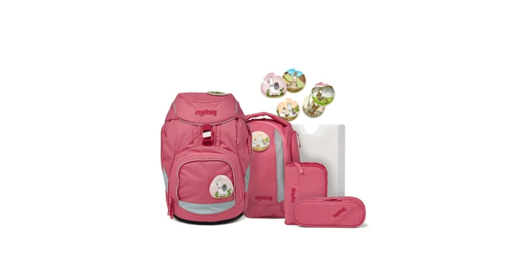1.SchulrucksackKombiniert das Ergonomiekonzept innovativer Trekking-Rucksäcke mit all dem, was eine Schultasche leisten muss. 2.SportrucksackKann wie ein Rucksack getragen oder einfach am Schulrucksack fixiert werden. 3.Kletties Mit den 4 Kletties und einem zauberhaften Kontur-Klettie lässt sich der ergobag individuell gestalten. 4.Heftebox Kann von oben mit Heften bis zu einem DIN A4 Format befüllt werden. 5.Federmäppchen Bestens ausgestattet (22-tlg.), finden neben 17 Stiften in Reih und Glied auch Radiergummi, Lineal, Spitzer und Stundenplan ihren Platz. 6.SchlampermäppchenPraktisch für Stifte, Schere und all das, was im Schulalltag wichtig ist.