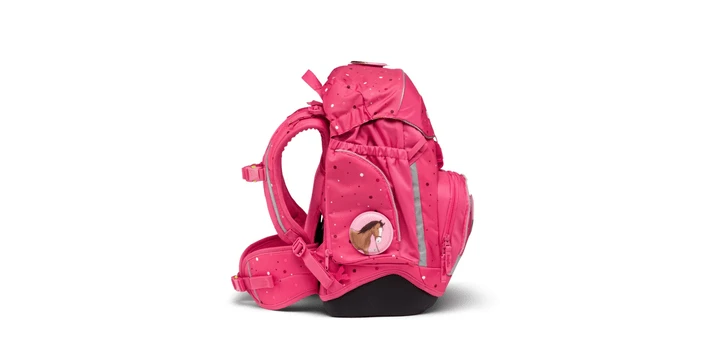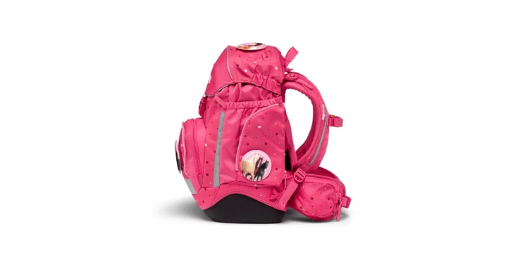 6-teiliges SetHöhenverstellbares Tragesystem „Your-Size-System“Hoher Tragekomfort durch breite, gepolsterte BeckenflossenGute Sichtbarkeit durch Reflektoren rundherumFest angenähte SeitentaschenLoop zum Anbringen von HangiesFahrkartenfach am BeckengurtKinderleichtes Öffnen und Schließen durch MagnetschnalleIndividualisierbar durch Kletties, Hangies, Zippies und Zip-Sets