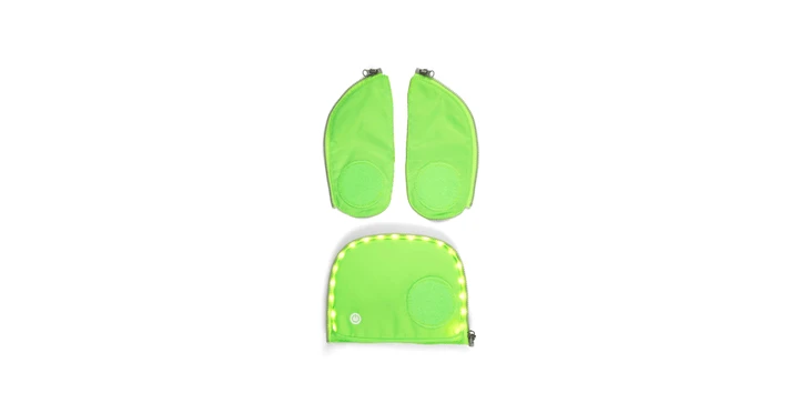 3-teiliges SicherheitssetFluoreszierendes Material mit in der Fronttasche verarbeiteten LED LeuchtschlauchLeicht zu befestigenGeeignet für pack, cubo, cubo light und wideInkl. USB-Ladekabel