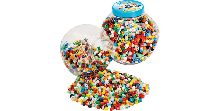 Bügelperlen sind ein ideales kreatives Spielzeug für Kinder ab 5 Jahren. Das Spielen mit den Perlen fördert Kreativität, Farbempfinden und Koordination von Augen und Hand. Zusätzlich zu den einfarbigen Hama – Perlen gibt es auch gestreifte, zweifarbige Perlen. Damit lassen sich Details in den Motiven noch schöner gestalten.