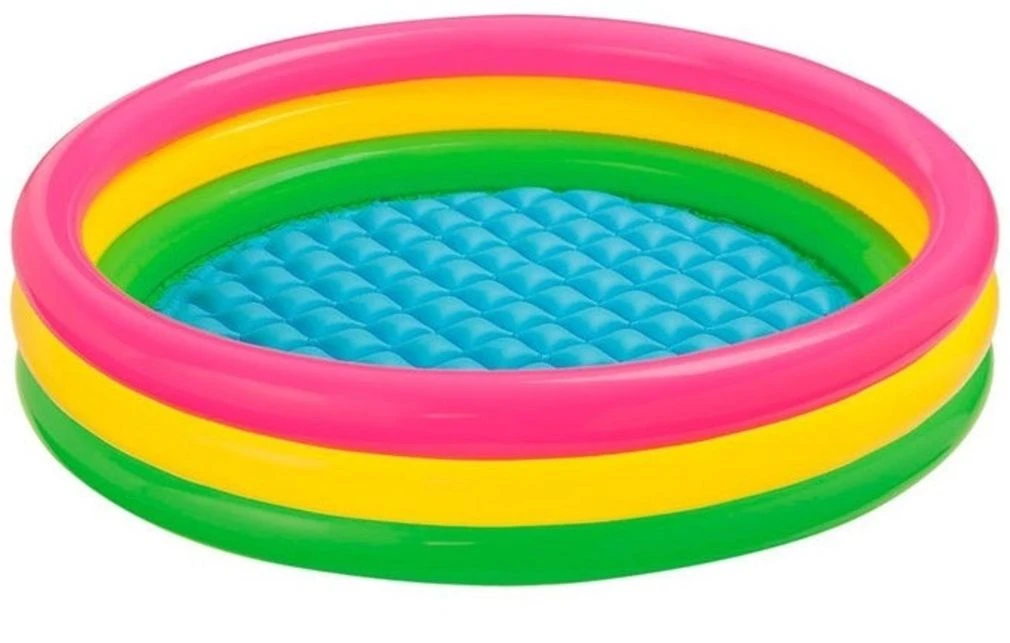 Das liegt vor allem an den leuchtenden Farben, dem niedrigen Rand und dem weichen Boden. Der Kinderpool hat eine Höhe von 25 cm, damit Kinder leicht ein- und aussteigen können. Der Boden ist aufblasbar und besteht aus vielen kleinen Kissen, sodass Ihr Kind im Planschbecken ganz weich sitzt. Da der Pool einen Durchmesser von 114 cm hat, können kleine Kinder auch wunderbar im Becken liegen.