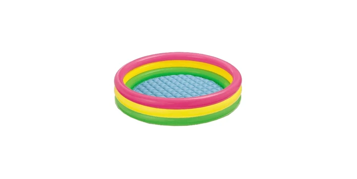 Das farbenfrohe Kinderbecken „Sunset Glow Pool“ von Intex bietet mit seiner Größe von 147 x 33 cm viel Platz zum Spielen. Drei Luftringe mit einer Materialstärke von 0,20 mm und ein weicher, aufblasbarer Boden mit einer Stärke von 0,18 mm bieten ausreichend Stabilität und Schutz beim Herumtollen. Bei einer Füllhöhe von 24 cm beträgt der Wasserinhalt 275 l.