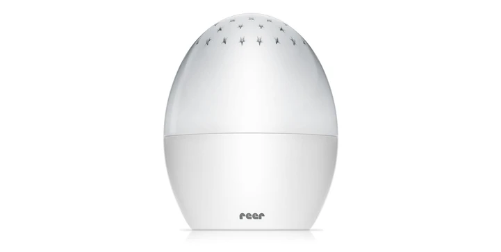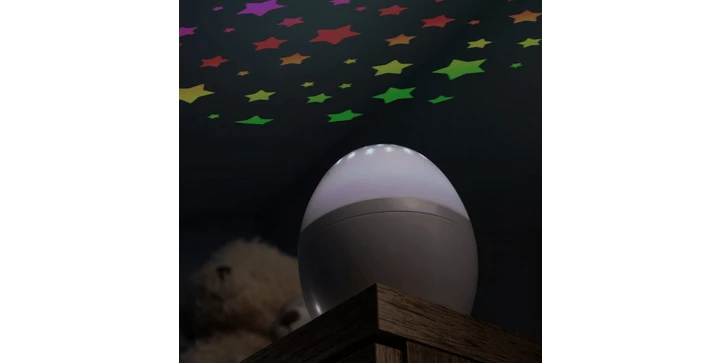 - Nachtlichtmodus: sanft-weißes Schlummerlicht mit bunter Sternenprojektion