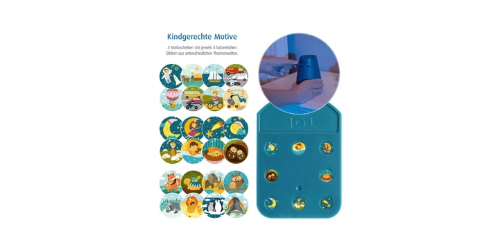 - Motivprojektor mit Einschlafliedern und Naturgeräuschen