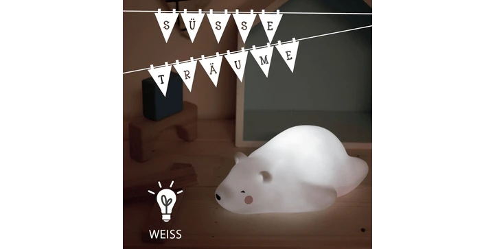 Dank der zwei Helligkeitsstufen kann die Leuchtkraft dem Umfeld und der Situation angepasst werden. Die stärkere Stufe läutet die Schlafenszeit ein und spendet ausreichend Helligkeit für abendliche Schlafrituale. Die schwächere Stufe hüllt das Kinderzimmer in eine beruhigende Schlummerstimmung – hell genug um Deinem Kind die Angst vor der Dunkelheit zu nehmen, dunkel genug für ein ungestörtes Einschlafen.