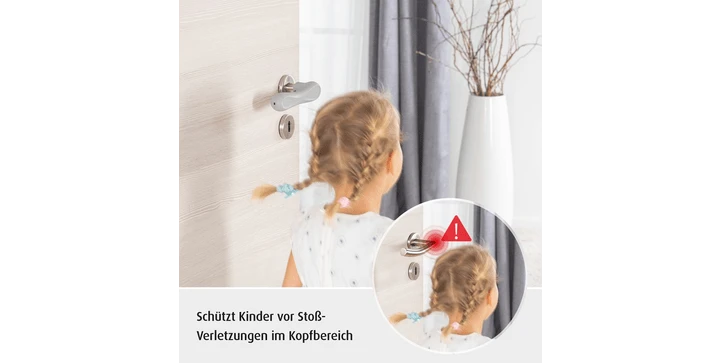 Sobald Kinder mobil sind und herumtollen, werden die auf Kopfhöhe befindlichen Türklinken zur Gefahr. Kommt es zum Zusammenstoß, ist das für Dein Kind nicht nur sehr schmerzhaft, sondern im schlimmsten Fall auch gefährlich.