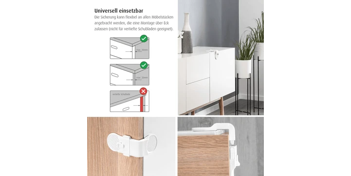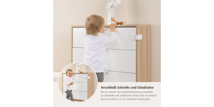 Verschließt zuverlässig Schränke & Schubladen vor neugierigen Kinderhänden