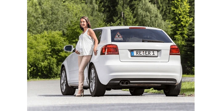 - signalisiert anderen Verkehrsteilnehmer, dass eine Schwangere im Auto ist