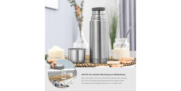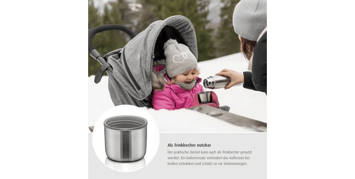 Auch wenn Dein Kind aus dem Milch-Alter herausgewachsen ist, bleibt die Isolierflasche auf Ausflügen euer treuer Begleiter. An kalten Tagen wärmt sie Dich und Deine Familie mit einem heißen Getränk. An warmen Tagen sorgt sie für eine kühlende Erfrischung. Kalt eingefüllte Säfte oder Tees bleiben bis zu 24 Stunden gekühlt und verlieren nicht an Frische.