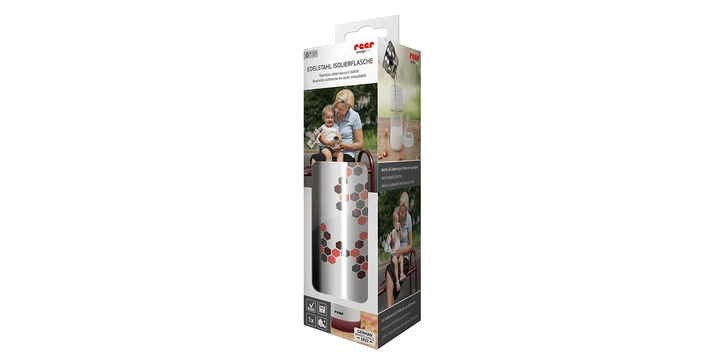 Warme oder kalte Getränke fürs Kind unterwegs immer griffbereit haben ist kein Problem mit der reer DesignLine Isolierflasche. Hochwertige Edelstahl-Innenwände halten Getränke wie Fruchtsaft, Tee oder Wasser für bis zu 12 Stunden warm bzw. kalt.