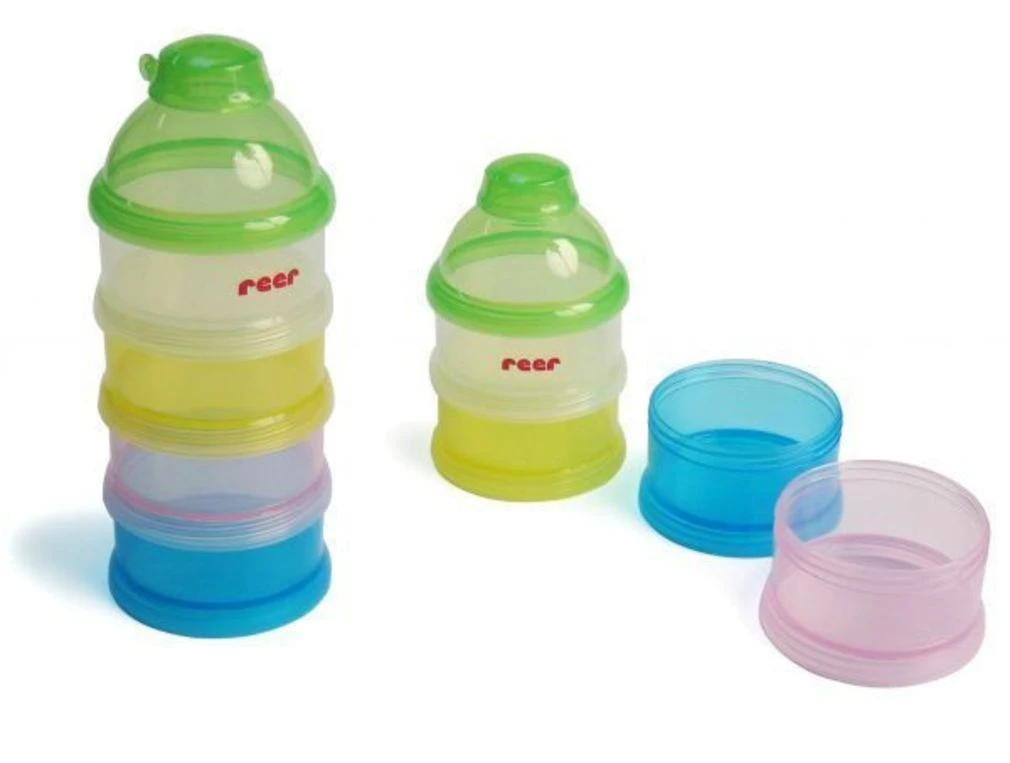 Sind Eltern mit ihrem Nachwuchs unterwegs, gibt es schon genügend Sachen, die man für die Versorgung des Kindes braucht. Für die Milch-Zubereitung unterwegs würden die großen Pulver-Verpackungen nur unnötig viel Platz in Anspruch nehmen. Abhilfe schafft hier der Milchpulver-Portionierer von reer, da Eltern auf diese Weise nur die benötigte Menge an Milchpulver dabeihaben. Für einen hygienischen Transport des Pulvers sorgt der zusätzliche Verschluss. Besonders platzsparend: da alle Dosen auch einzeln verschließbar sind, können je nach Länge des Ausflugs auch nur ein oder zwei Döschen mitgenommen werden.