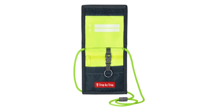 Im Step by Step Brustbeutel ist alles griffbereit: Das Taschengeld für das Pausenbrot findet seinen Platz und die Busfahrkarte kann im Klarsichtfach untergebracht werden. Dank der Kordel können Kinder sich den Geldbeutel um den Hals hängen und so nicht verlieren.