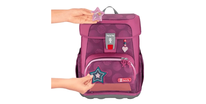 Die MAGIC MAGS lassen sich jederzeit austauschen. Sie halten einfach an den integrierten Magnetflächen des Step by Step Ranzens oder Rucksacks– so gefällt er bis zur 4. Klasse.