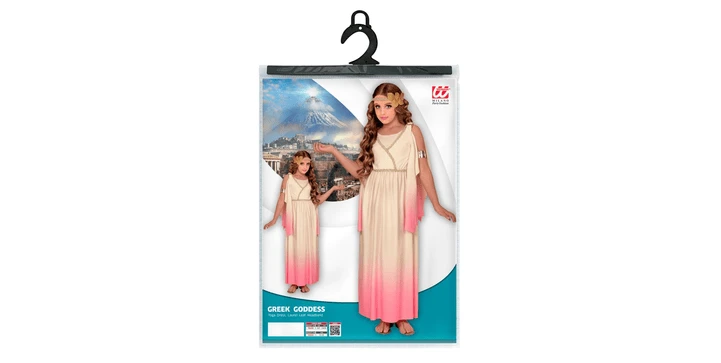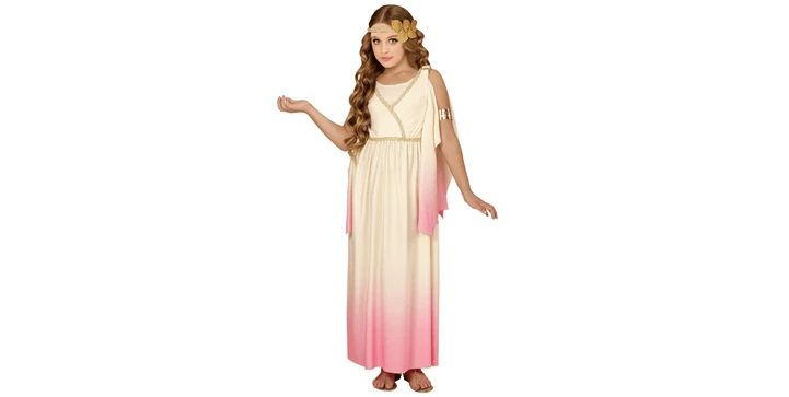 Das Griechische Kindergöttin Rosaria Kinderkostüm besteht aus einem himmlischen Kleid in Creme und Rosa sowie einem passenden Lorbeerkranz.